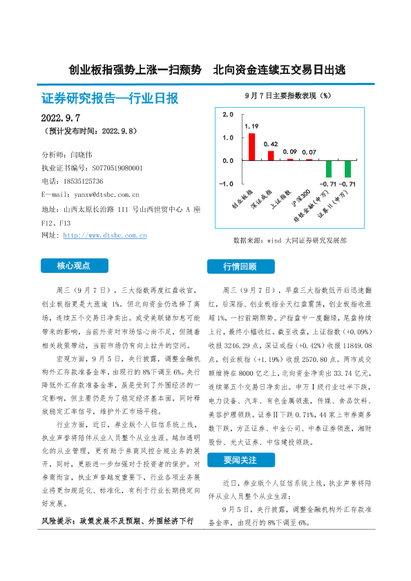 【大同证券】【20220907】非银金融行业日报:创业板指强势上涨一扫颓势 北向资金连续五交易日出逃-10页