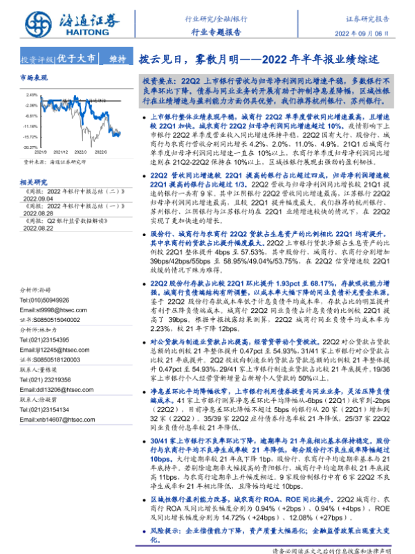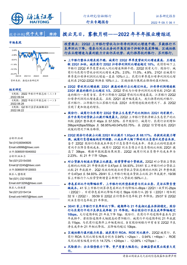 【海通证券】【20220906】银行2022年半年报业绩综述:拨云见日,雾散月明-16页