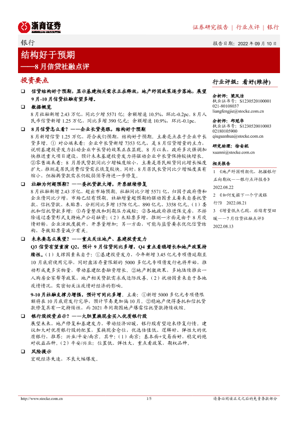 【浙商证券】【20220910】8月信贷社融点评:结构好于预期-5页