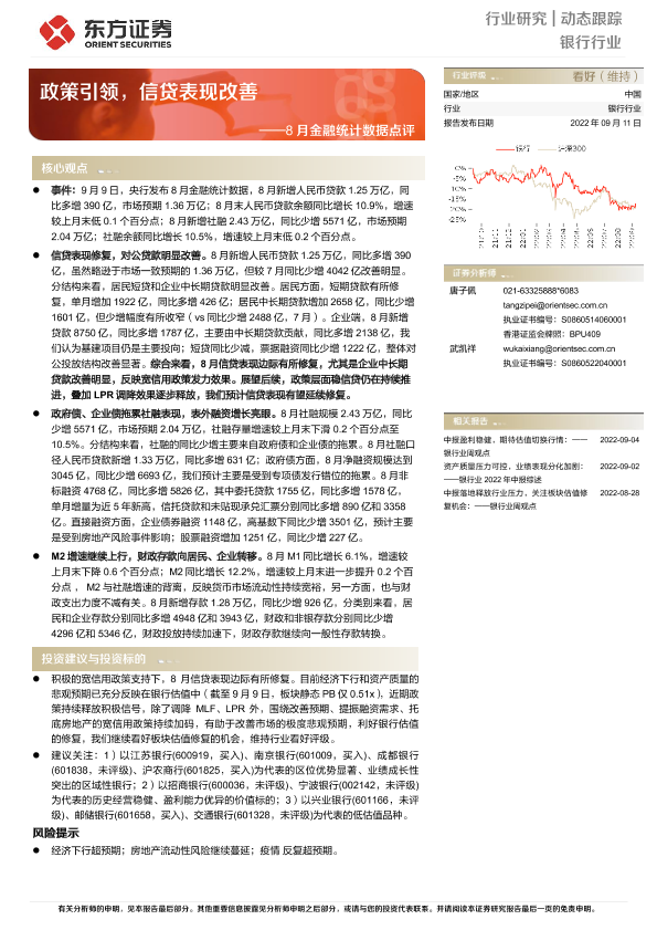 【东方证券】【20220911】8月金融统计数据点评:政策引领,信贷表现改善-4页
