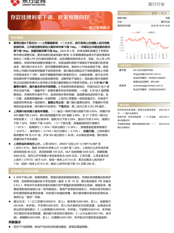 【东方证券】【20220918】银行业周观点:存款挂牌利率下调,政策预期向好-12页