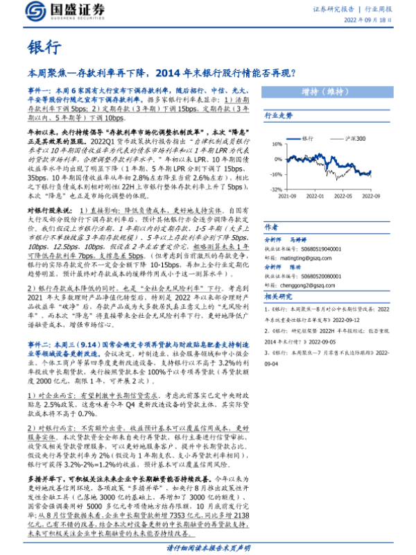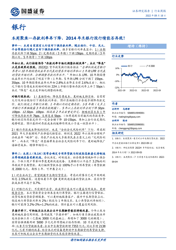 【国盛证券】【20220918】银行本周聚焦:存款利率再下降,2014年末银行股行情能否再现?-13页