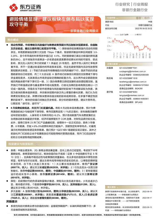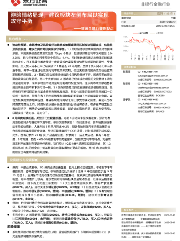 【东方证券】【20220925】非银金融行业周观点:避险情绪显现,建议板块左侧布局以实现攻守平衡-13页