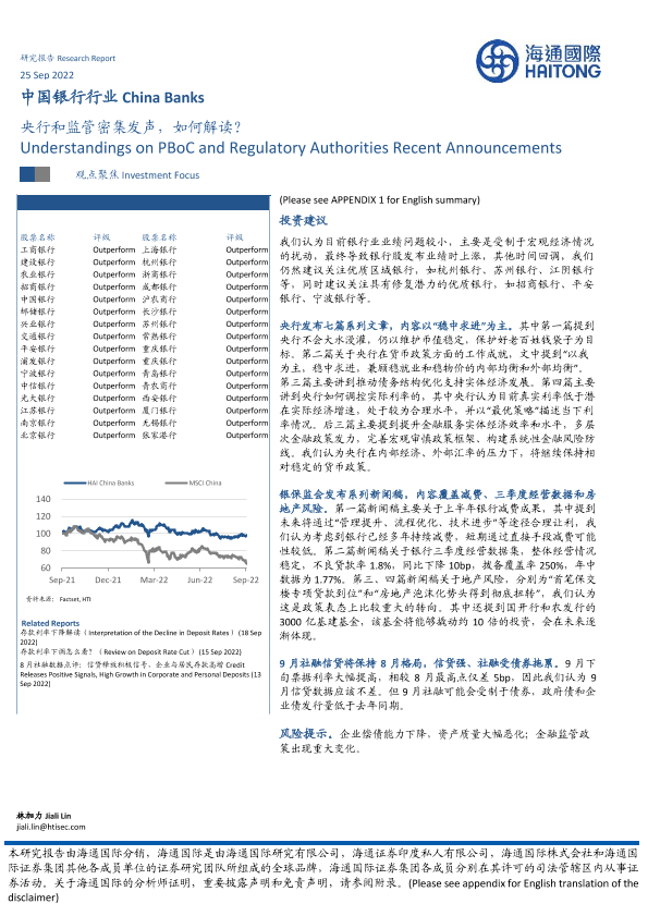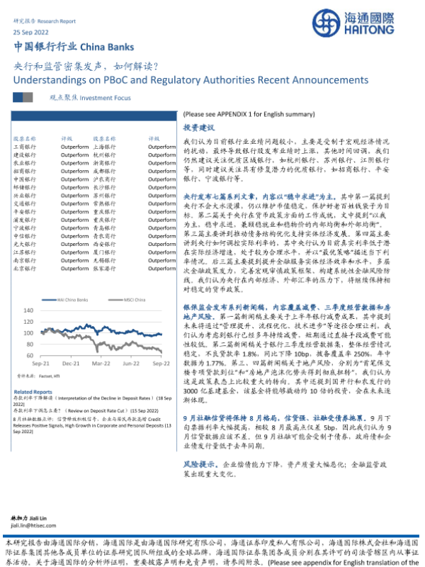 【海通国际】【20220925】中国银行行业:央行和监管密集发声,如何解读?-10页