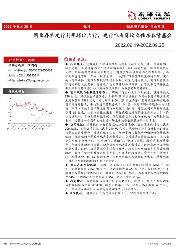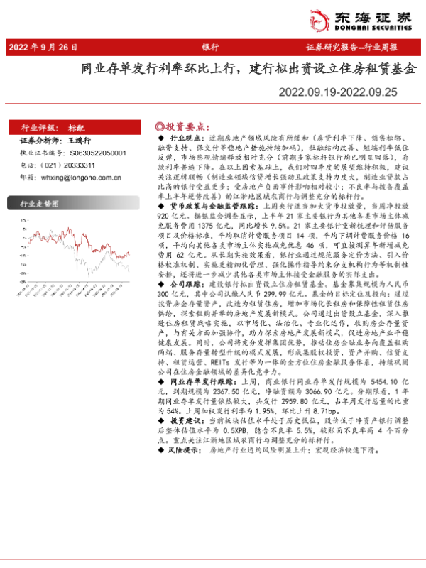 【东海证券】【20220926】银行行业周报:同业存单发行利率环比上行,建行拟出资设立住房租赁基金-13页