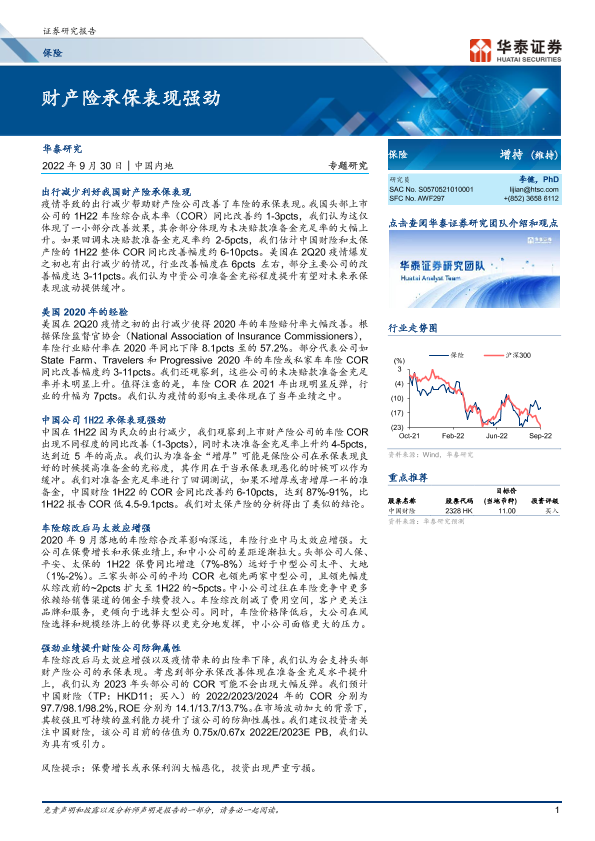 【华泰证券】【20220930】保险专题研究:财产险承保表现强劲-15页