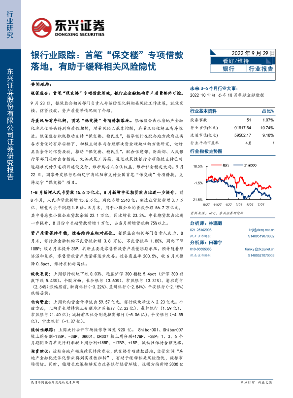 【东兴证券】【20220929】银行业跟踪:首笔“保交楼”专项借款落地,有助于缓释相关风险隐忧-10页