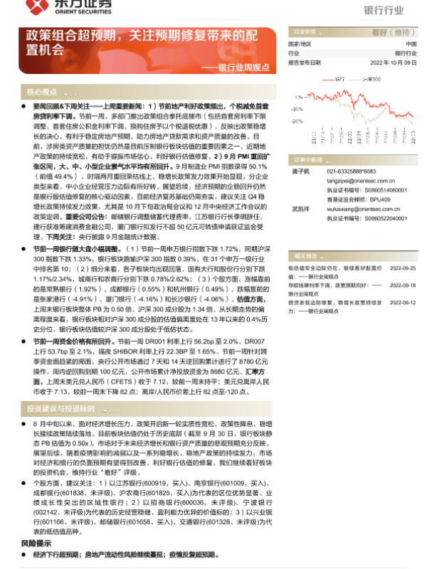 【东方证券】【20221009】银行业周观点:政策组合超预期,关注预期修复带来的配置机会-12页