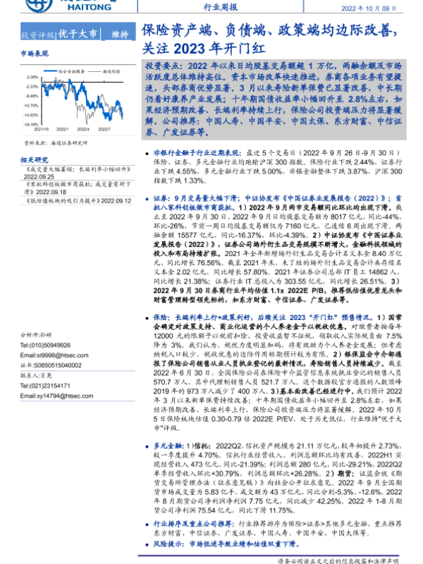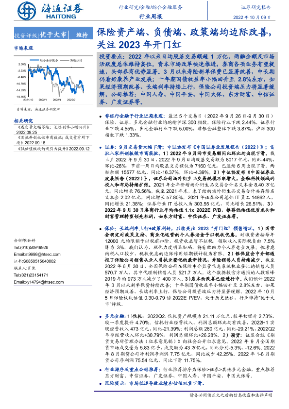 【海通证券】【20221009】综合金融服务行业周报:保险资产端、负债端、政策端均边际改善,关注2023年开门红-11页