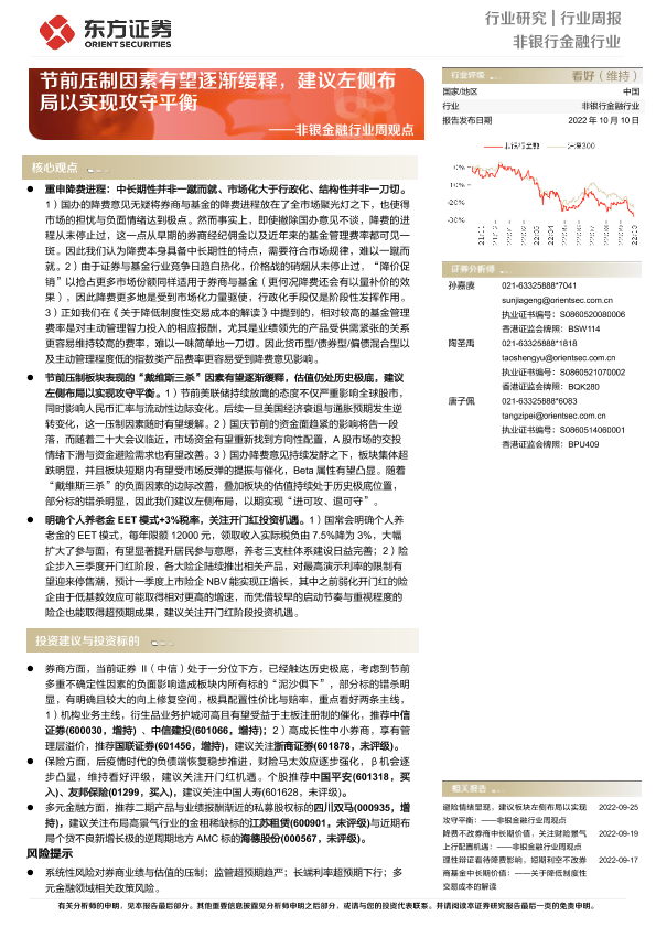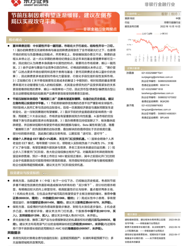【东方证券】【20221010】非银金融行业周观点:节前压制因素有望逐渐缓释,建议左侧布局以实现攻守平衡-13页