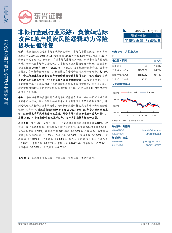 【东兴证券】【20221010】非银行金融行业跟踪:负债端边际改善&地产投资风险缓释助力保险板块估值修复-12页