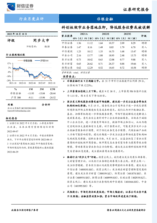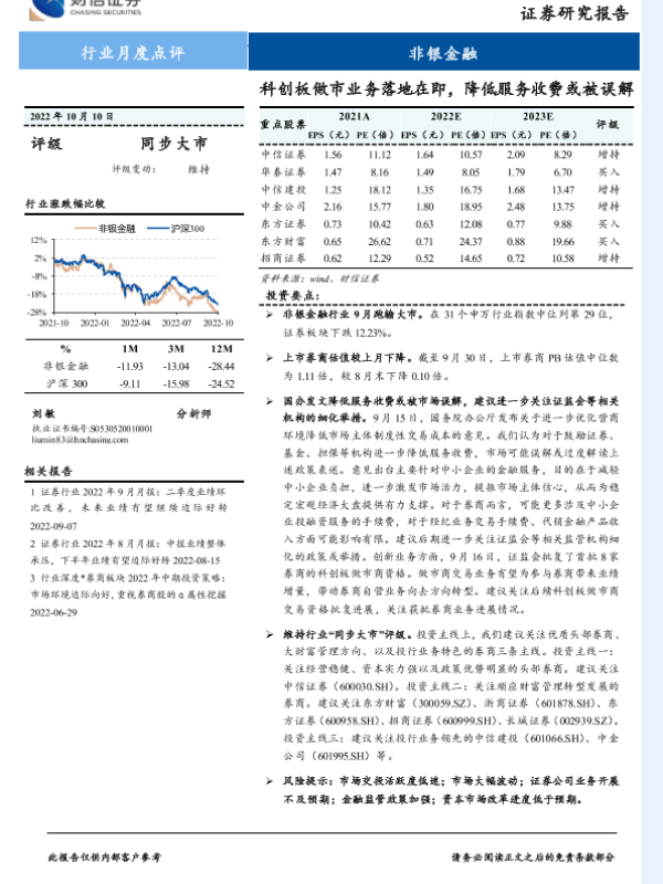 【财信证券】【20221010】非银金融行业月度点评:科创板做市业务落地在即,降低服务收费或被误解-10页