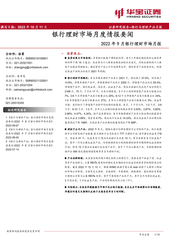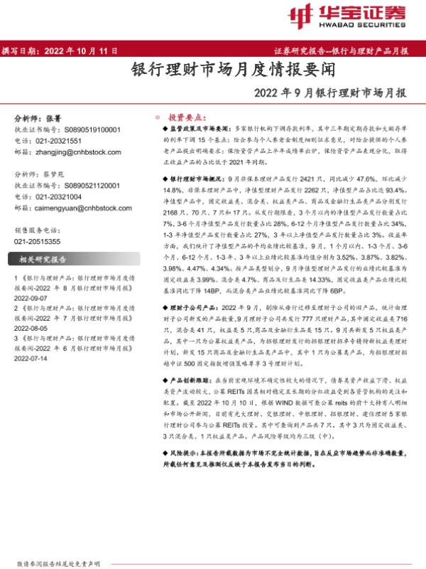 【华宝证券】【20221011】2022年9月银行理财市场月报-10页