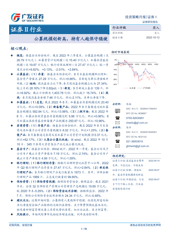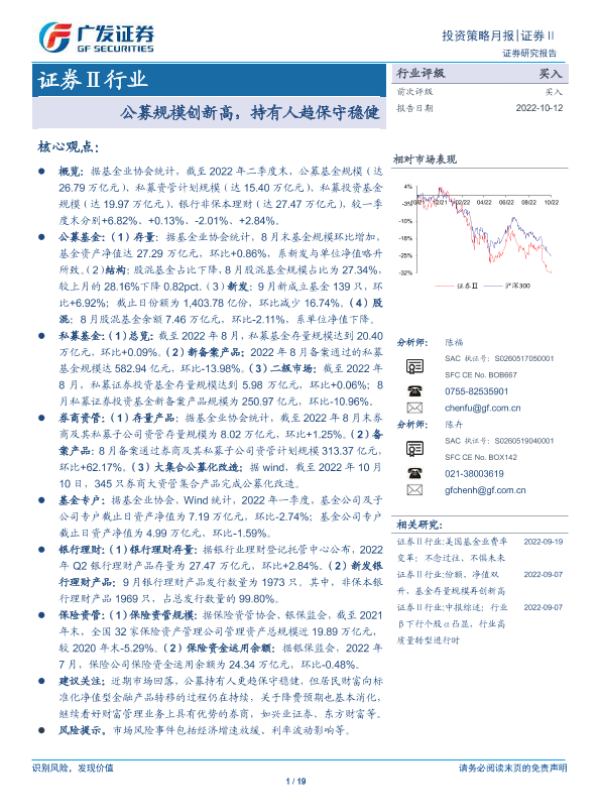 【广发证券】【20221012】证券Ⅱ行业:公募规模创新高,持有人趋保守稳健-19页