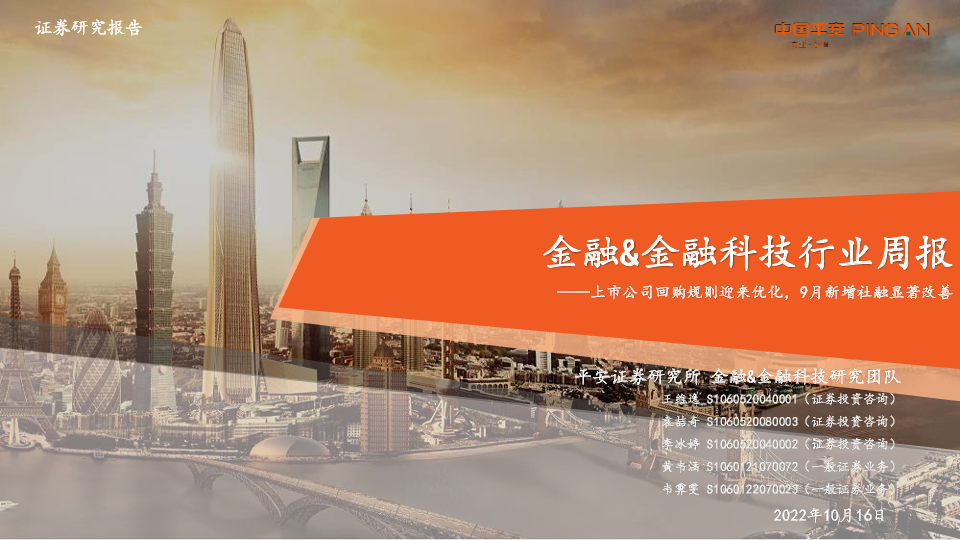 【平安证券】【20221016】金融&金融科技行业周报:上市公司回购规则迎来优化,9月新增社融显著改善-17页