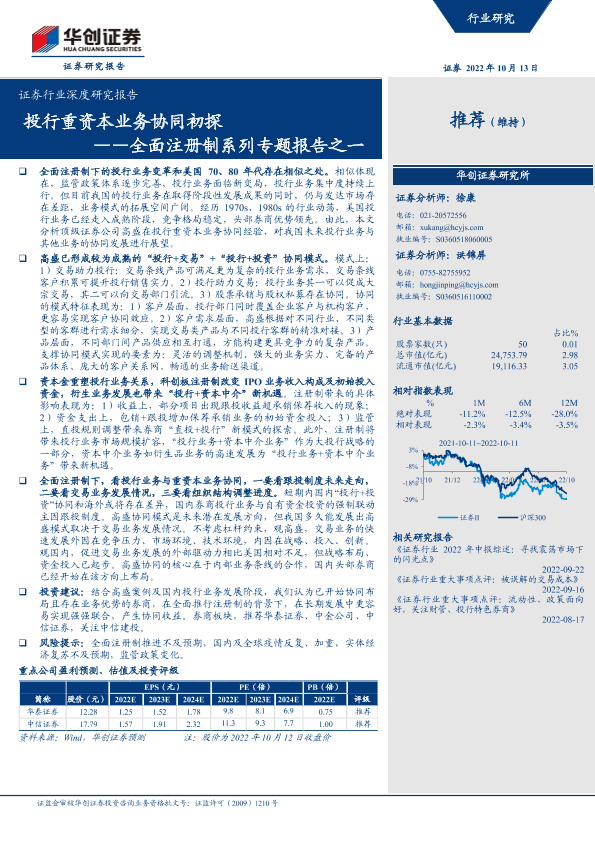 【华创证券】【20221013】证券行业深度研究报告:全面注册制系列专题报告之一-投行重资本业务协同初探-33页