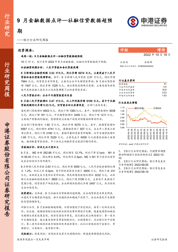 【申港证券】【20221016】9月金融数据点评—社融信贷数据超预期-13页