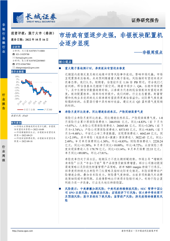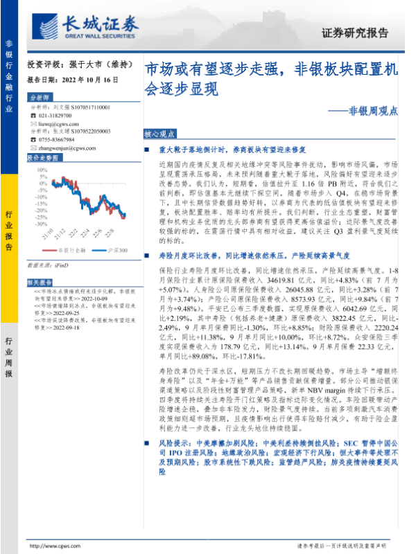 【长城证券】【20221016】非银周观点:市场或有望逐步走强,非银板块配置机会逐步显现-33页