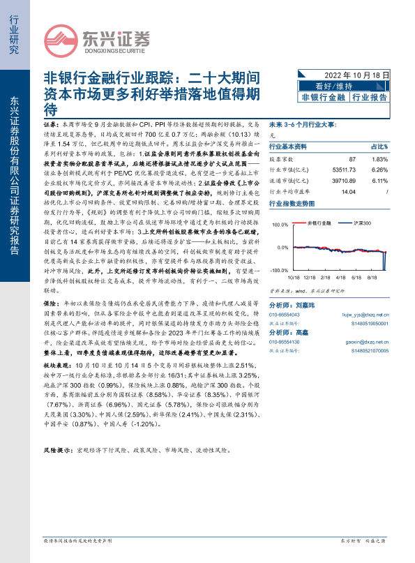 【东兴证券】【20221018】非银行金融行业跟踪:二十大期间资本市场更多利好举措落地值得期待-13页