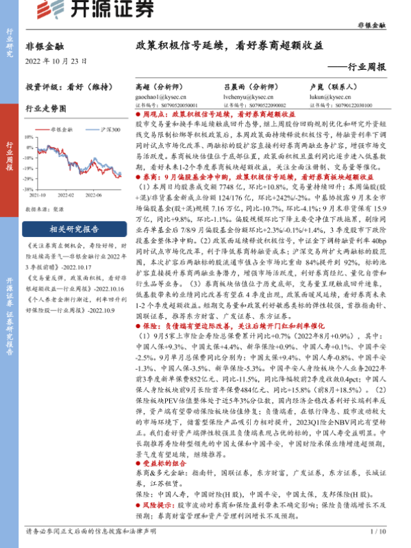 【开源证券】【20221023】非银金融行业周报:政策积极信号延续,看好券商超额收益-10页