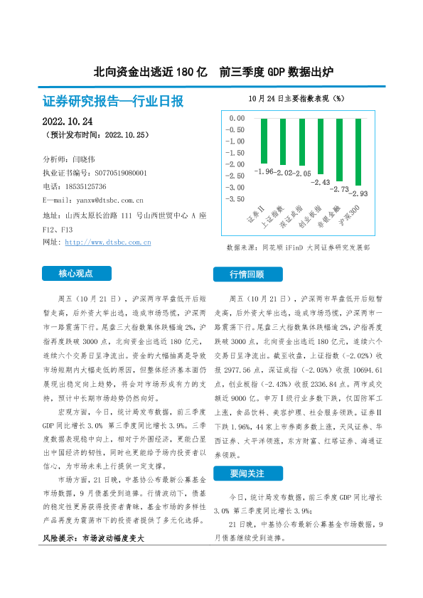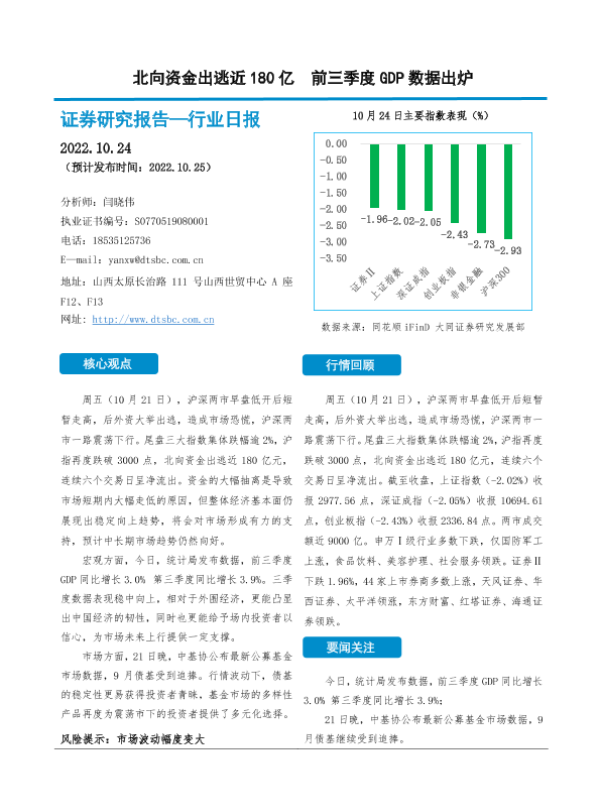 【大同证券】【20221024】非银金融行业日报:北向资金出逃近180亿 前三季度GDP数据出炉-11页