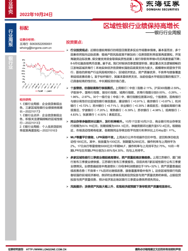 【东海证券】【20221024】区域性银行业绩保持高增长-11页