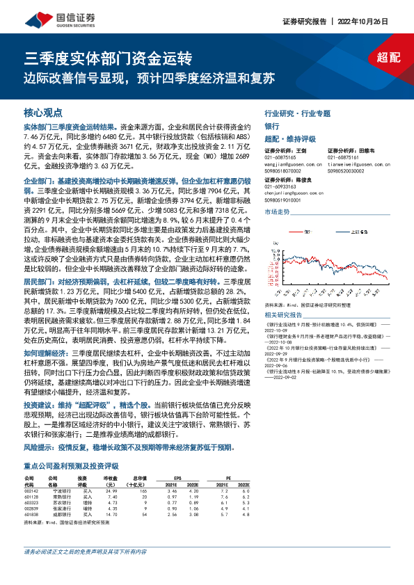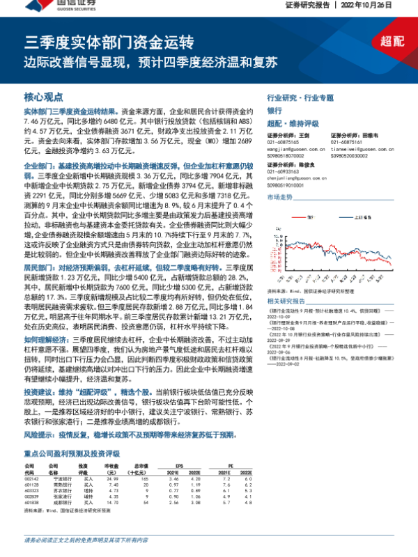 【国信证券】【20221026】银行三季度实体部门资金运转:边际改善信号显现,预计四季度经济温和复苏-14页