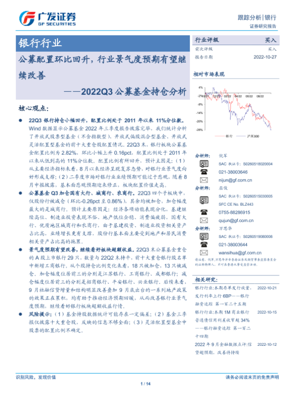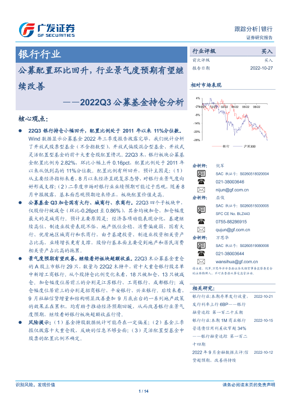 【广发证券】【20221027】2022Q3公募基金持仓分析-公募配置环比回升,行业景气度预期有望继续改善-14页