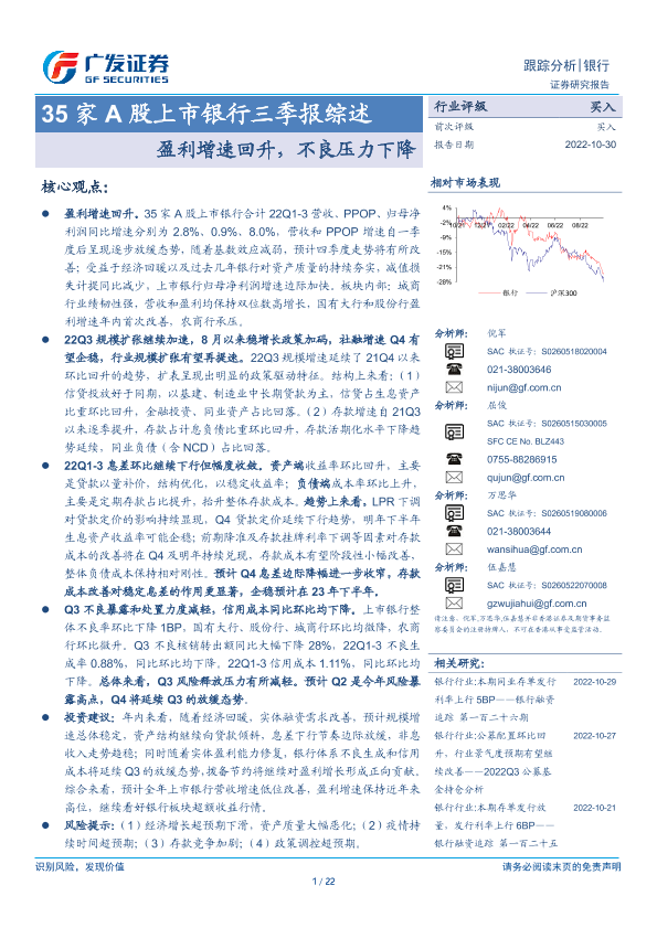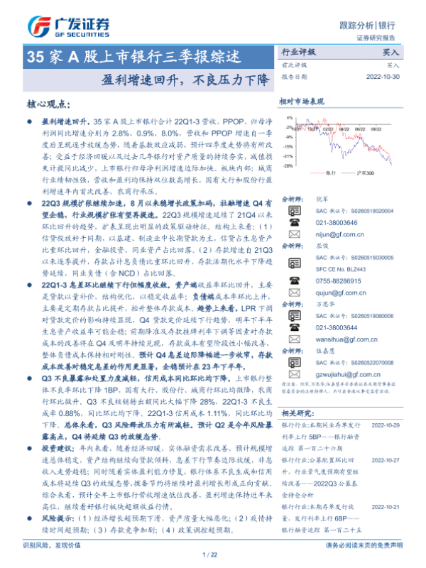【广发证券】【20221030】35家A股上市银行三季报综述:盈利增速回升,不良压力下降-22页