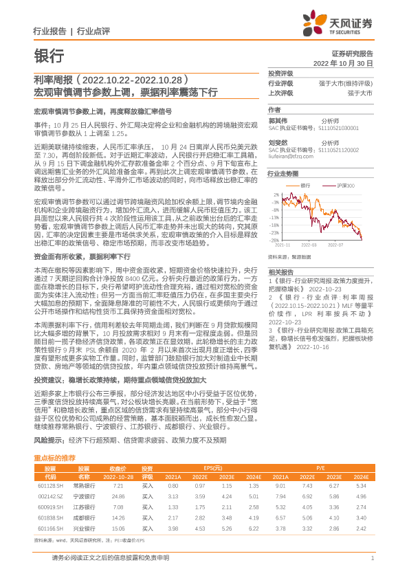 【天风证券】【20221030】银行利率周报:宏观审慎调节参数上调,票据利率震荡下行-10页