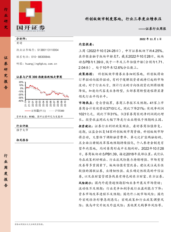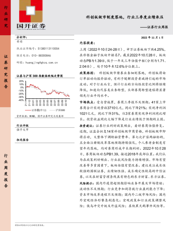 【国开证券】【20221101】证券行业周报:科创板做市制度落地,行业三季度业绩承压-10页