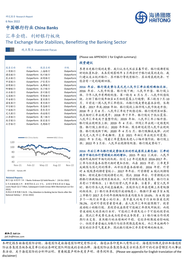 【海通国际】【20221106】中国银行行业:汇率企稳,利好银行板块-11页