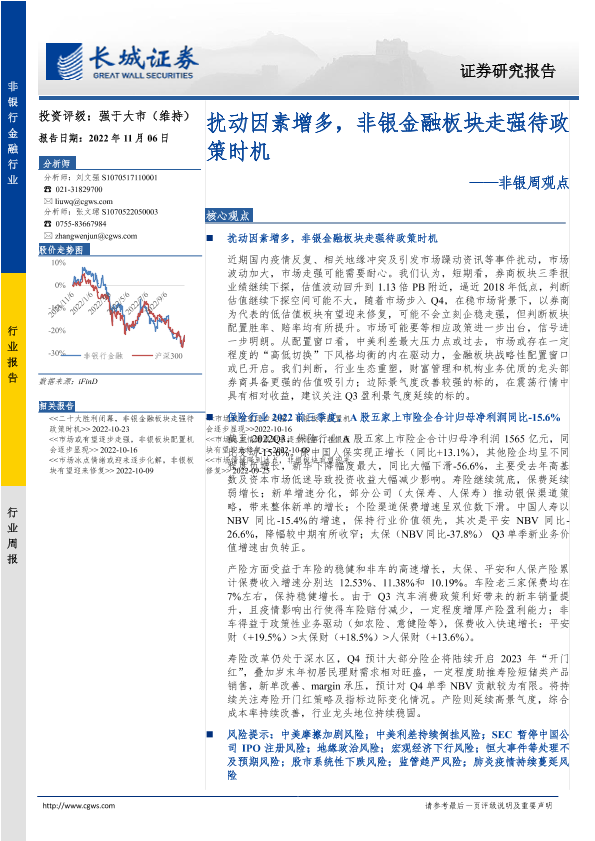 【长城证券】【20221106】非银周观点:扰动因素增多,非银金融板块走强待政策时机-34页