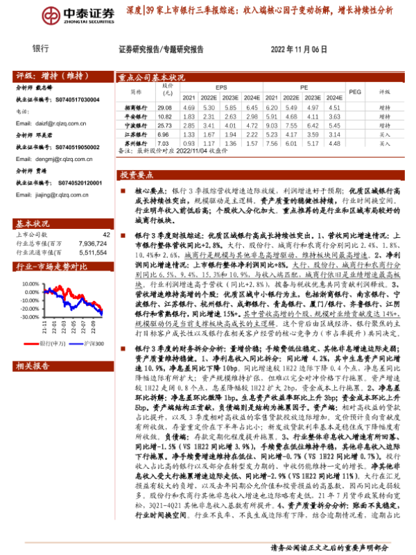 【中泰证券】【20221106】39家上市银行三季报综述:收入端核心因子变动拆解,增长持续性分析-35页