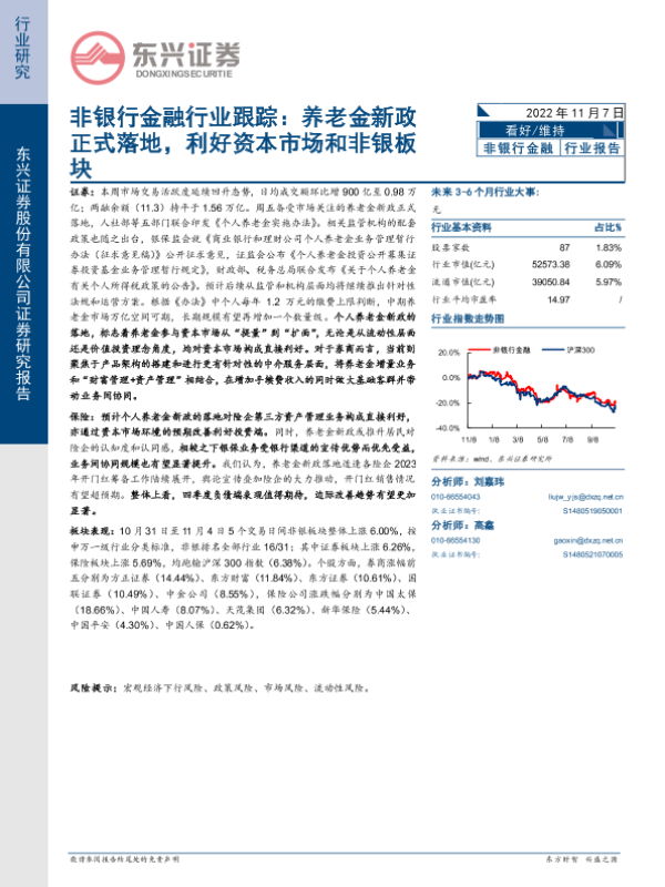 【东兴证券】【20221107】非银行金融行业跟踪:养老金新政正式落地,利好资本市场和非银板块-12页