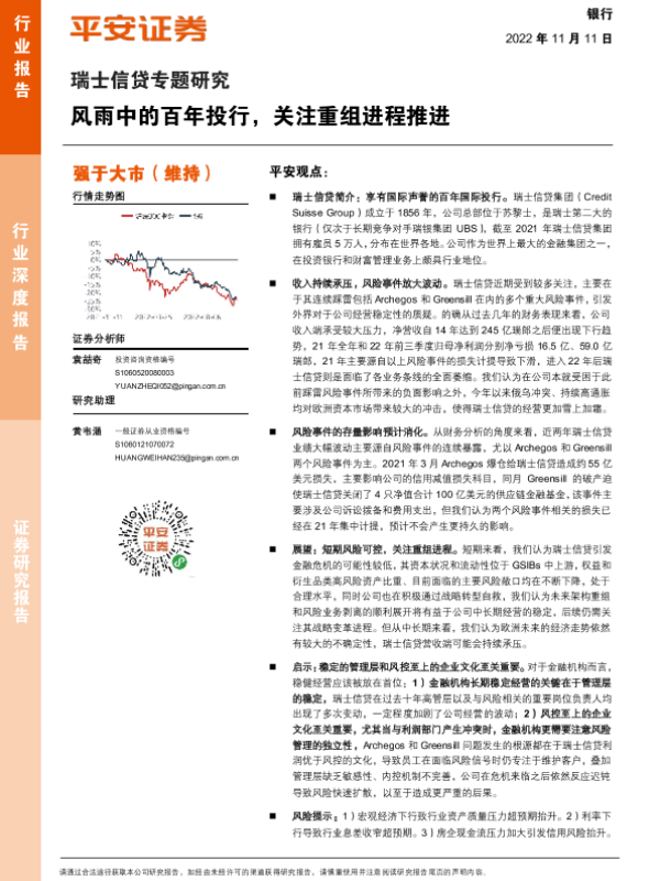 【平安证券】【20221111】瑞士信贷专题研究 风雨中的百年投行,关注重组进程推进-16页
