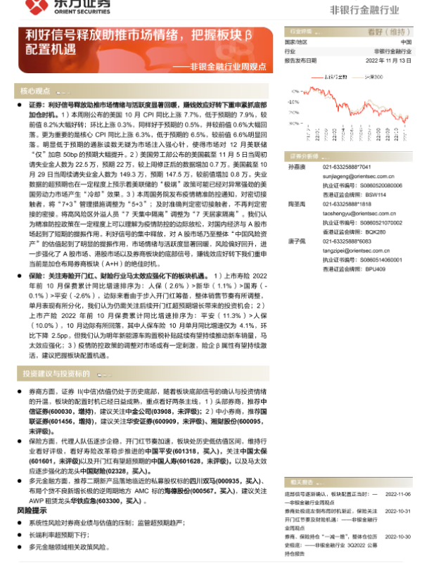 【东方证券】【20221113】非银金融行业周观点:利好信号释放助推市场情绪,把握板块β配置机遇-14页