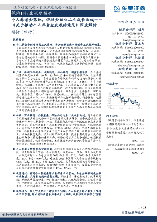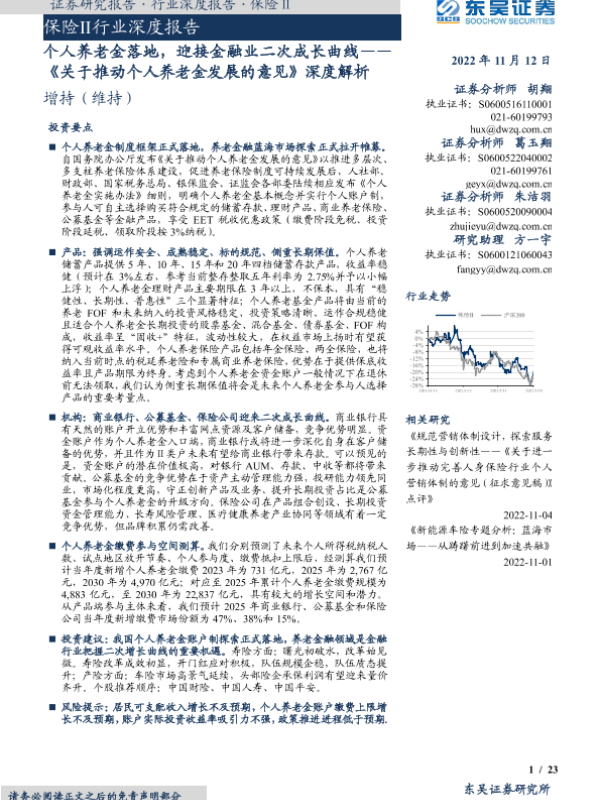 【东吴证券】【20221112】保险Ⅱ行业深度报告:个人养老金落地,迎接金融业二次成长曲线-23页