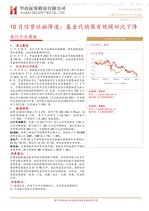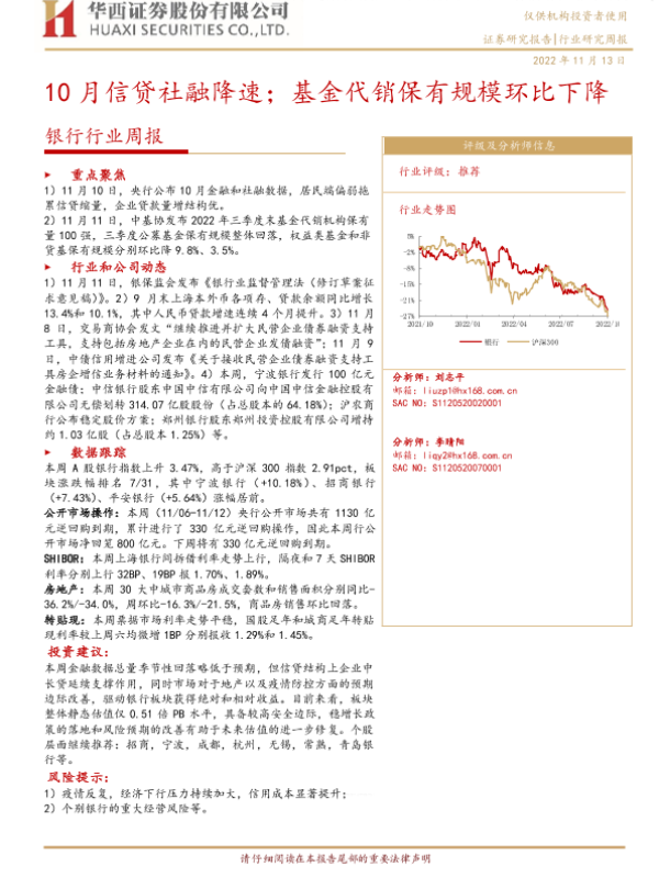 【华西证券】【20221113】10月信贷社融降速;基金代销保有规模环比下降-10页