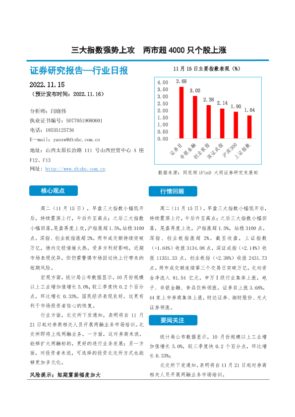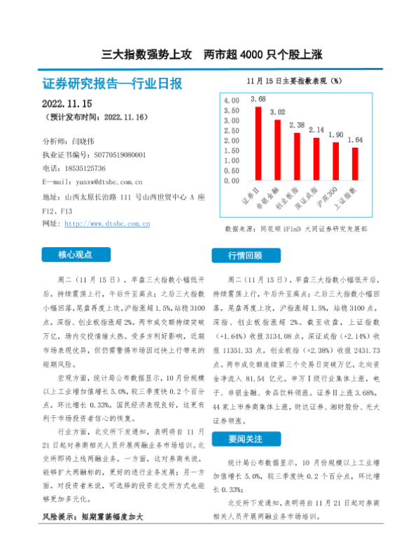 【大同证券】【20221115】非银金融行业日报:三大指数强势上攻 两市超4000只个股上涨-10页