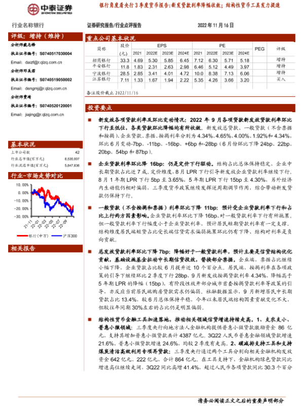 【中泰证券】【20221116】银行角度看央行3季度货币报告:新发贷款利率降幅收敛;结构性货币工具发力提速-11页