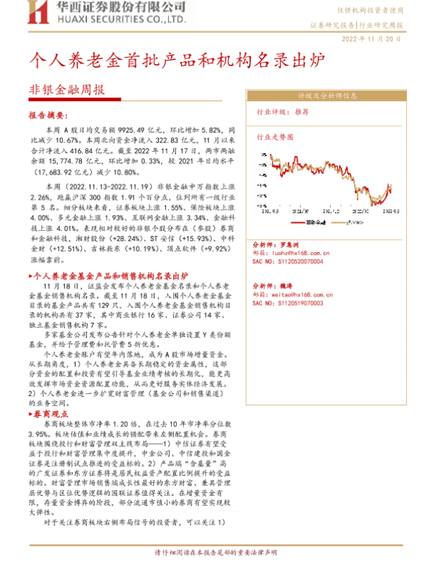 A股市场 个人养老金 基金产品 金融机构名录 非银金融