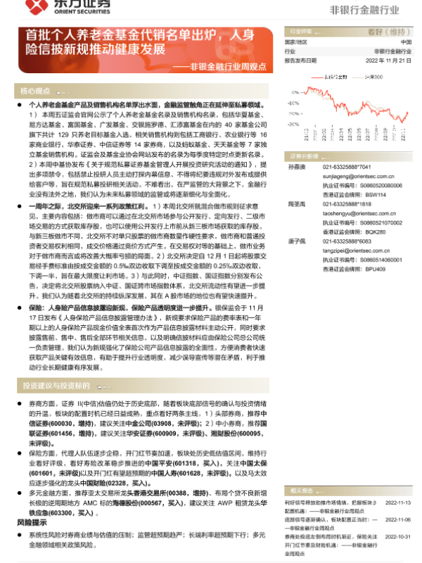 【东方证券】【20221121】首批个人养老金基金代销名单出炉,人身险信披新规推动健康发展-14页