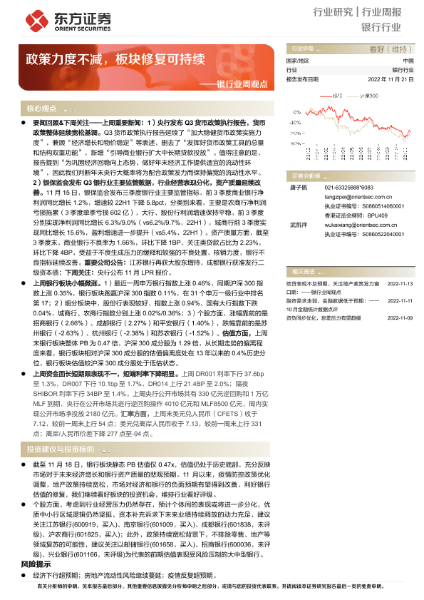 【东方证券】【20221121】银行业周观点:政策力度不减,板块修复可持续-14页