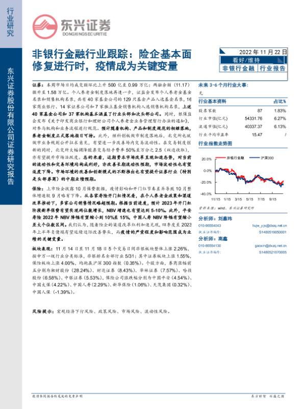【东兴证券】【20221122】非银行金融行业跟踪:险企基本面修复进行时,疫情成为关键变量-12页