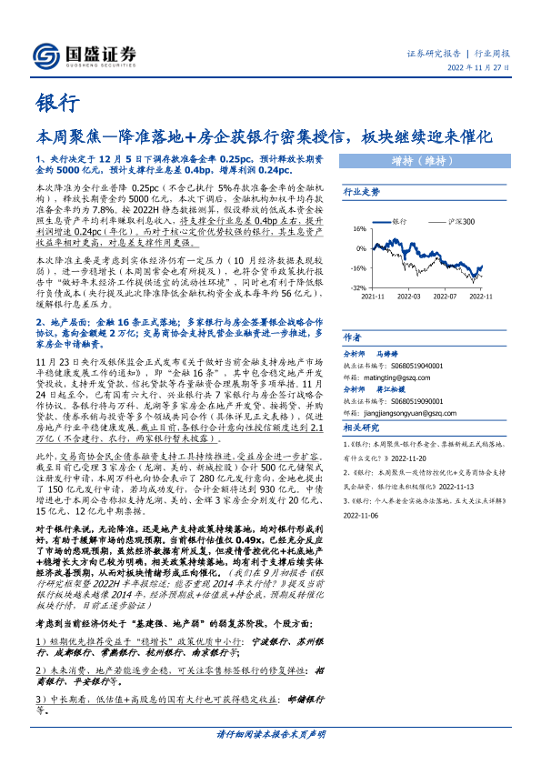 【国盛证券】【20221127】银行本周聚焦:降准落地+房企获银行密集授信,板块继续迎来催化-12页