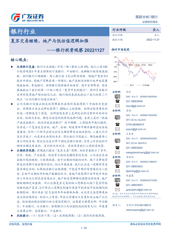 【广发证券】【20221127】银行投资观察:复苏交易继续,地产与低估值逻辑加强-23页