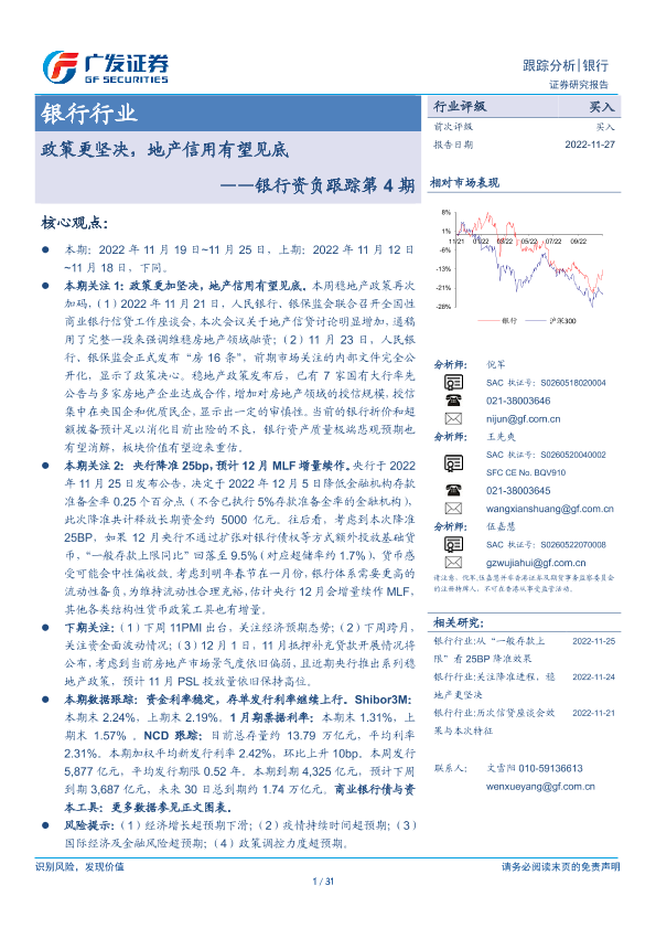 【广发证券】【20221127】银行资负跟踪第4期:政策更坚决,地产信用有望见底-31页