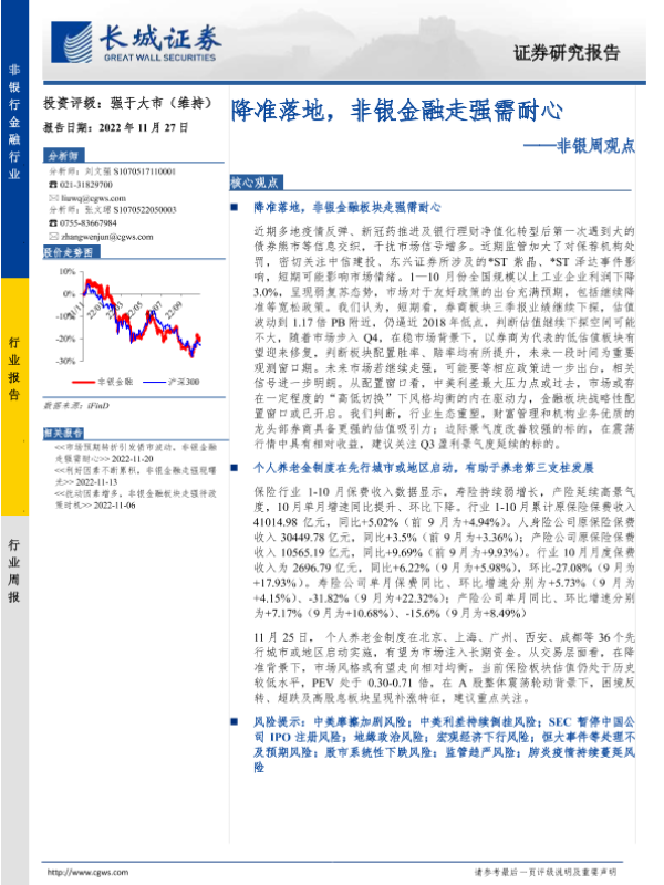 【长城证券】【20221127】非银周观点:降准落地,非银金融走强需耐心-33页