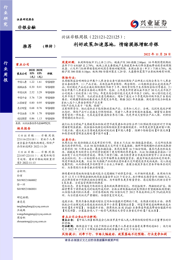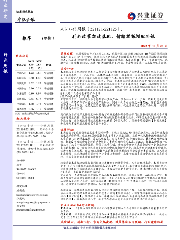 【兴业证券】【20221128】兴证非银周报:利好政策加速落地,情绪提振增配非银-15页